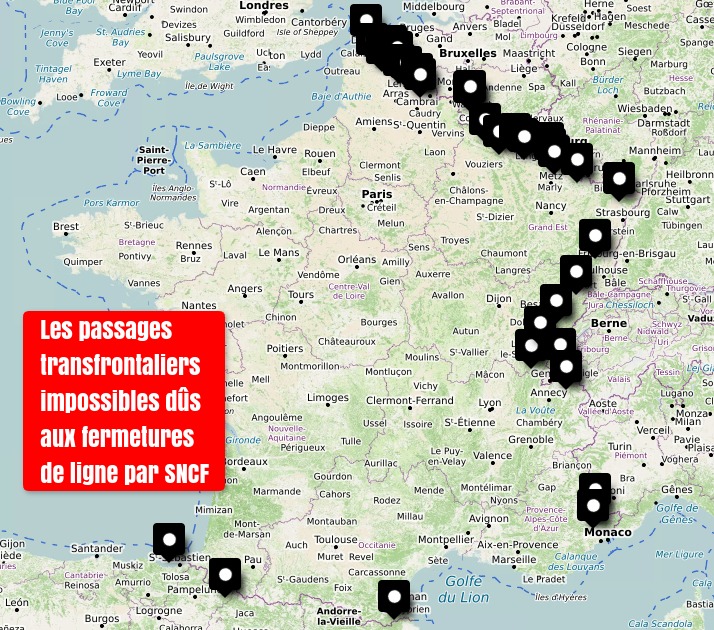 La carte montre ces lignes abandonnées ainsi que leur impact sur la circulation transfrontalière. Il est énorme.
