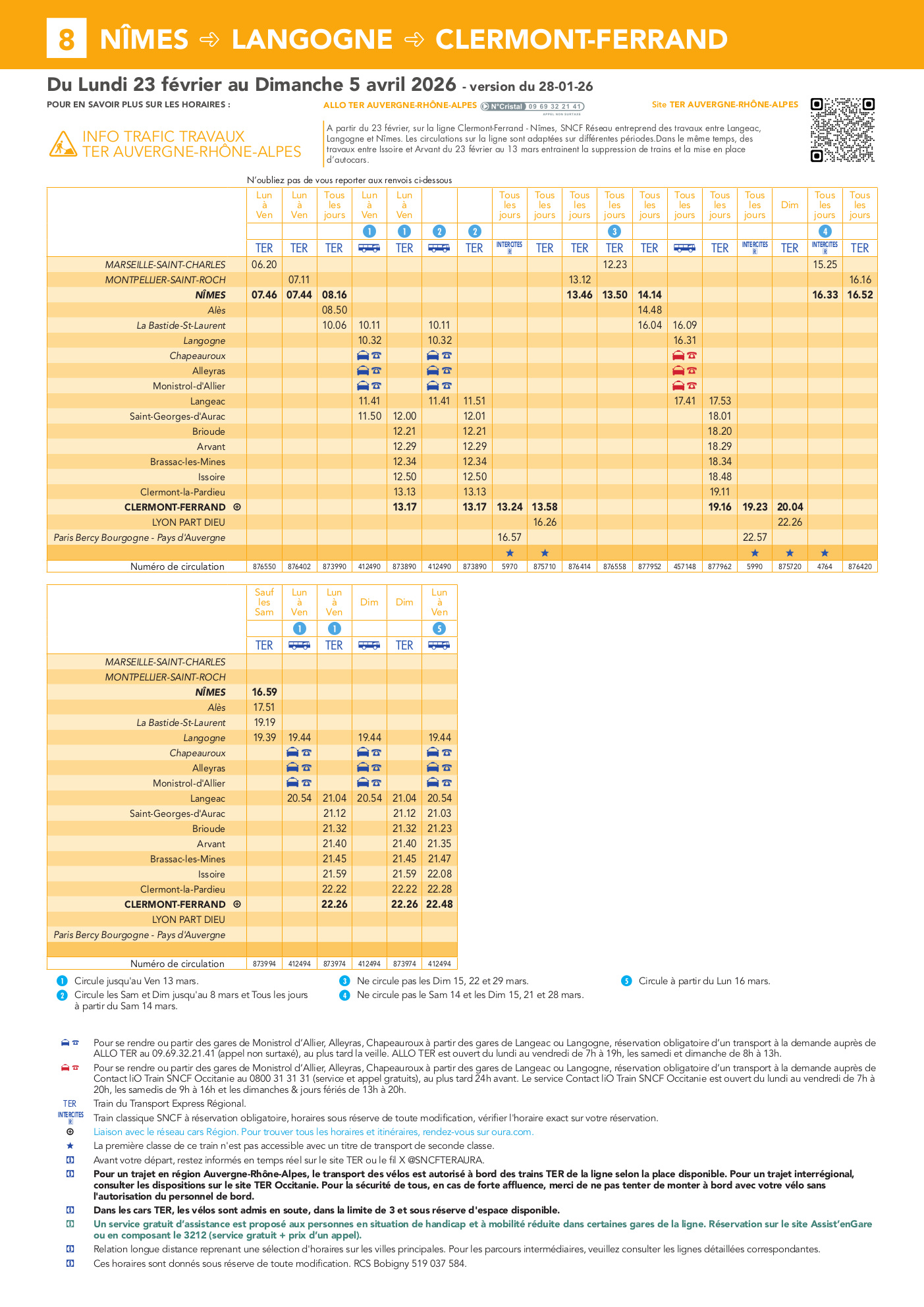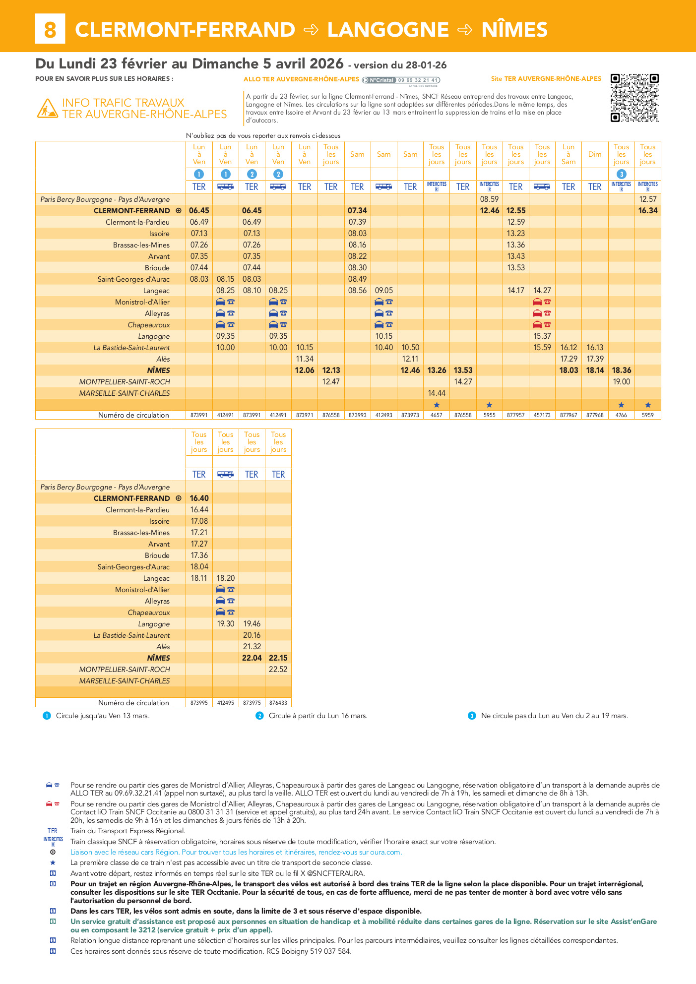 1) Pour la ligne des Cévennes coupure du 23/02 au 05/04 :